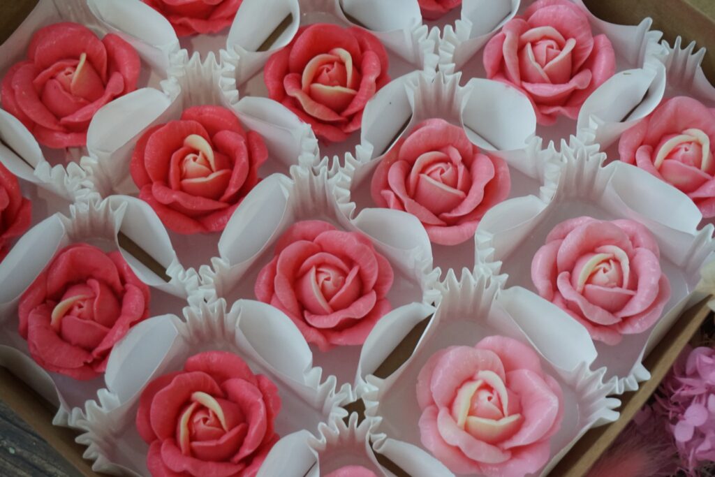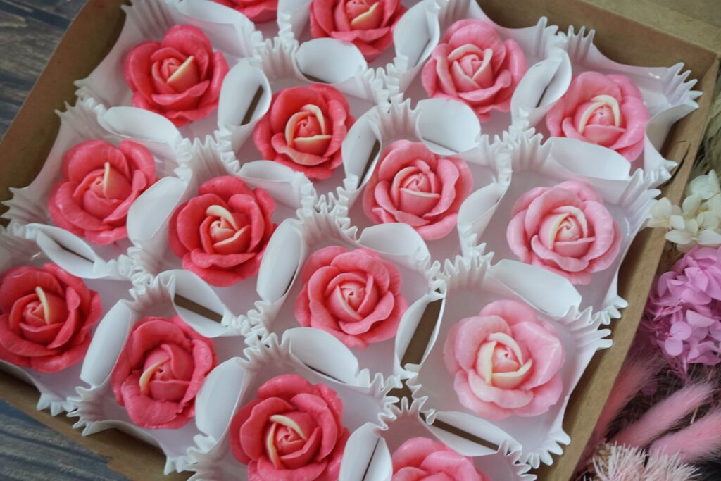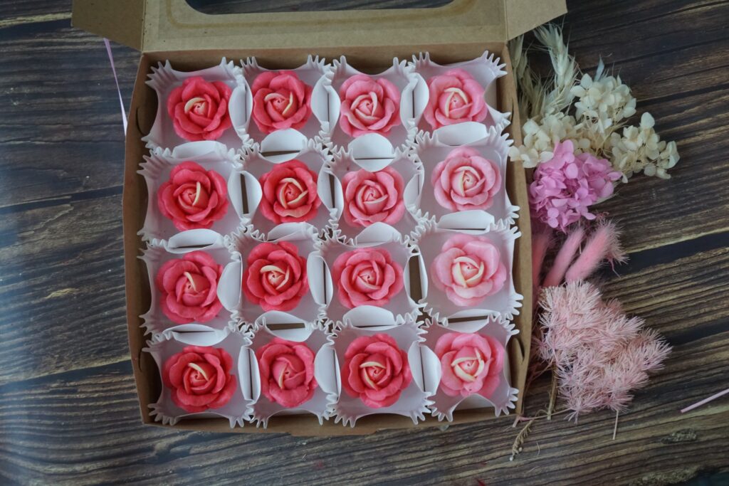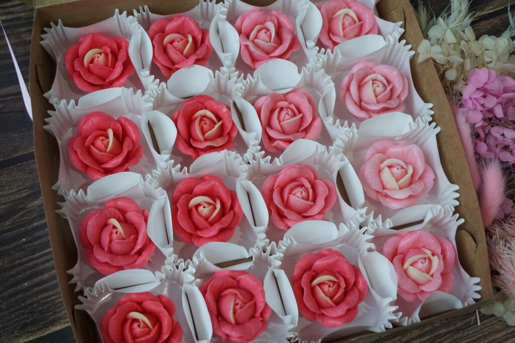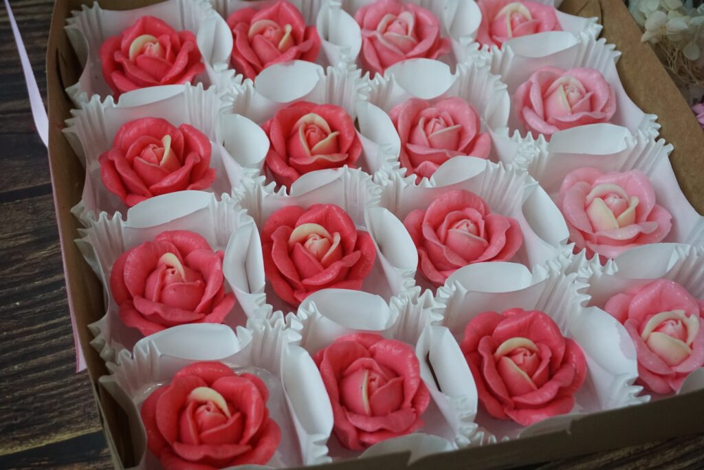 NEW Content for studentFlower jelly in box set 16 pcs. student can follow this step1. This style we call “Flower jelly in box set 16 pcs.2. Student can follow recipe at lecture 2.1, 3– Watch lecture at link : https://www.yknjellyland.com/?page_id=49323.Flower mold : in the photo we only use 1 mold : product code is Mold : B41 From Yukino Cooking Shop.Color : Jelly color > (Pink +Light Yellow)4.Color : In the photo we only use 2 color ( Food color gel base , )5. Color technique . ,5.1 Center : Student have to drop light yellow jelly mixture in the center.*Impotent* need to mix same color tone in every flower (center)5.2 Flower shape : Student can use pink color drop in Hot jelly mixture Less >> More to make color tone to make flower shape part.*Impotent* Do not use different color more than 1 color to make this style. in photo we use color :Pink colorThis style no need to pour jelly to make base in cupcake paper box._________________________ToolsBox : Carf cake box size 20 cm *Can buy from bakery tools shop*